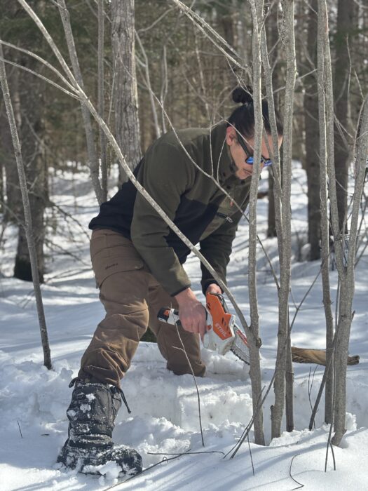 Harvesting maple saplings for a wiigwaam – March, 2025.